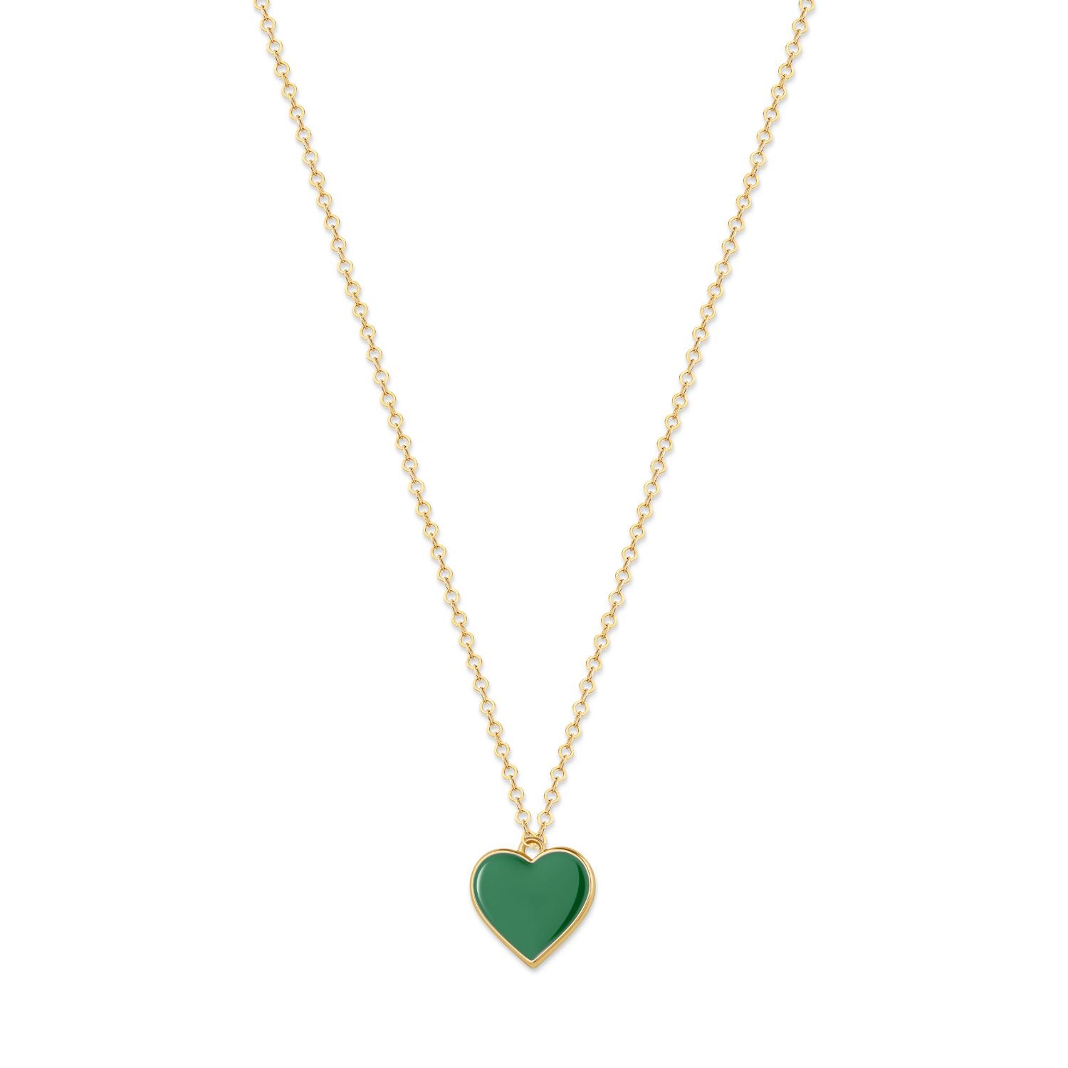 The Single Hearted Girl Green Necklace features a glossy double sided enamel heart a radiant pop of color on a durable 18inch gold filled chain. It’s a statement of resilience, independence, and daily elegance.